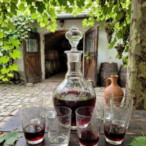 Bíbor rubin csiszolt kristály borospohár készlet kancsóval
