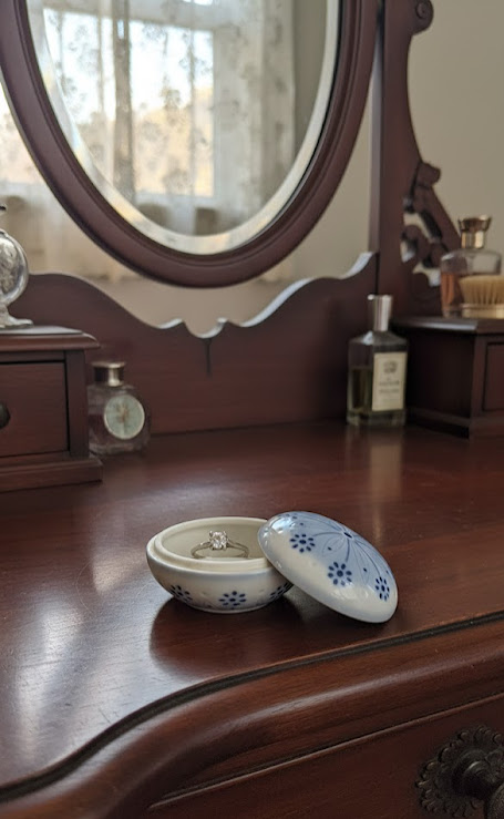 Gyűrűtartó porcelán a fésülködő asztalon