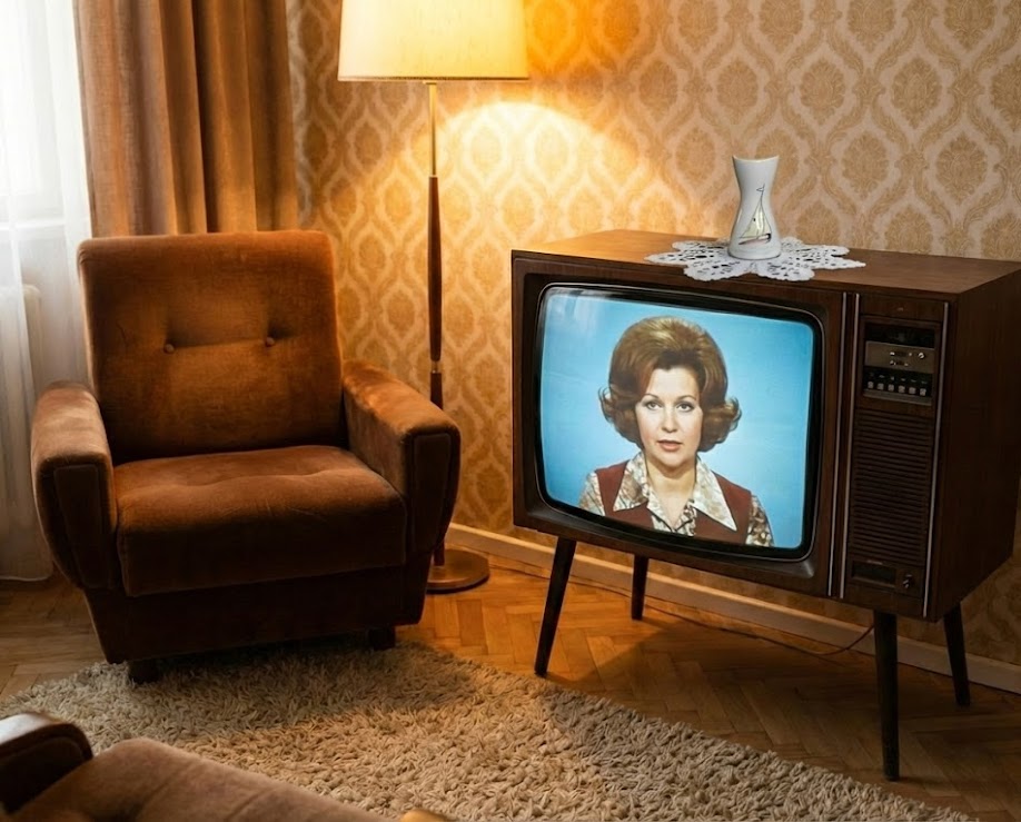 Aquincum porcelán – „Balatoni emlék” váza a tévé tetején