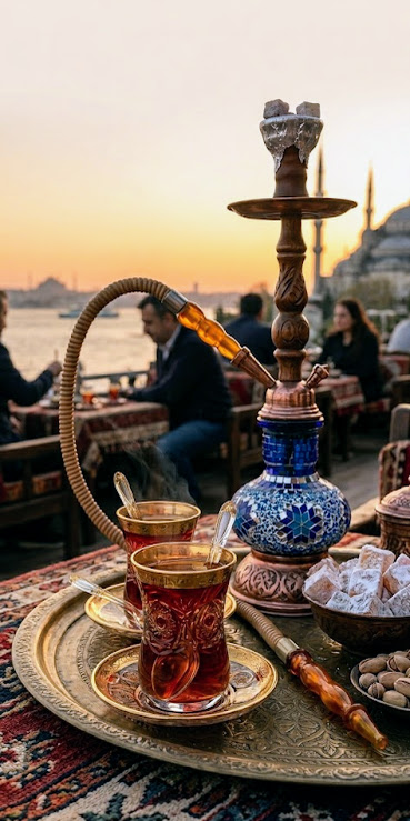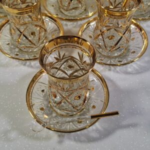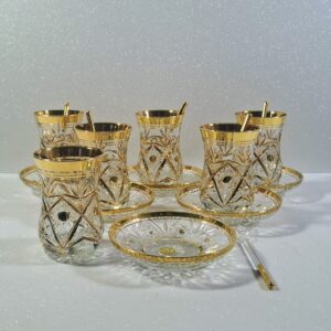 Teljes, 6 személyes tradicionális török teáskészlet. Gazdag aranyozás, csiszolt minták, hibátlan vitrinállapot. Eredeti „Made in Türkiye” export darab.
