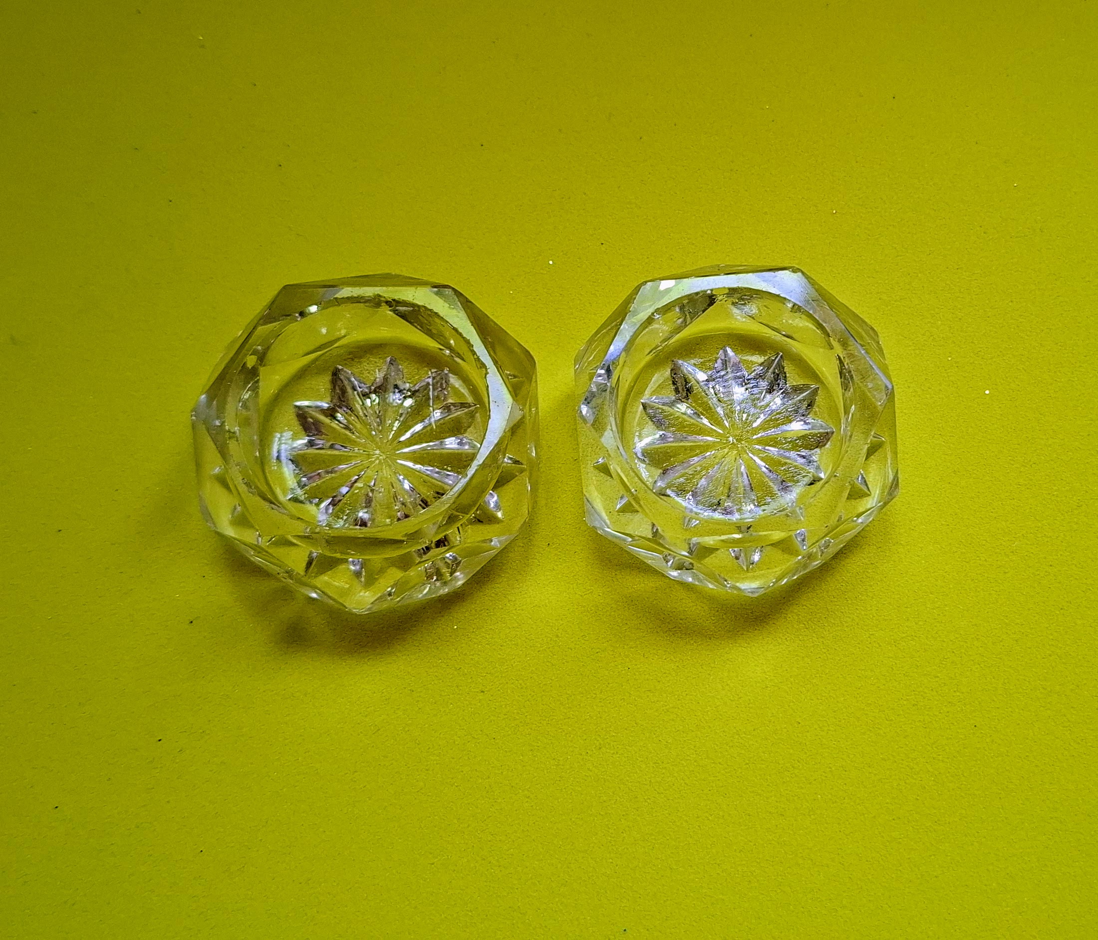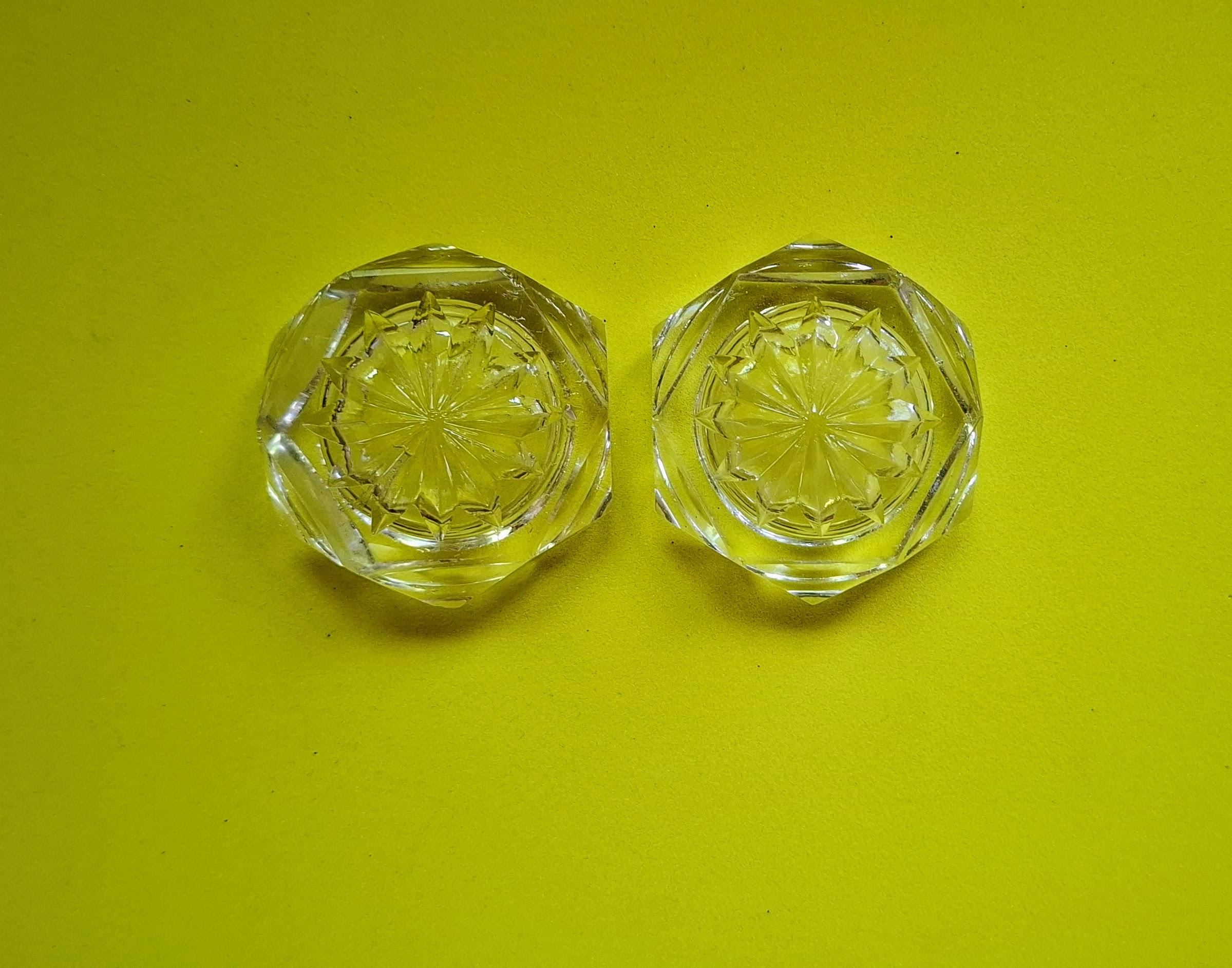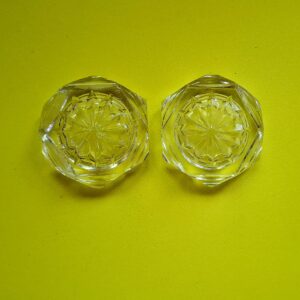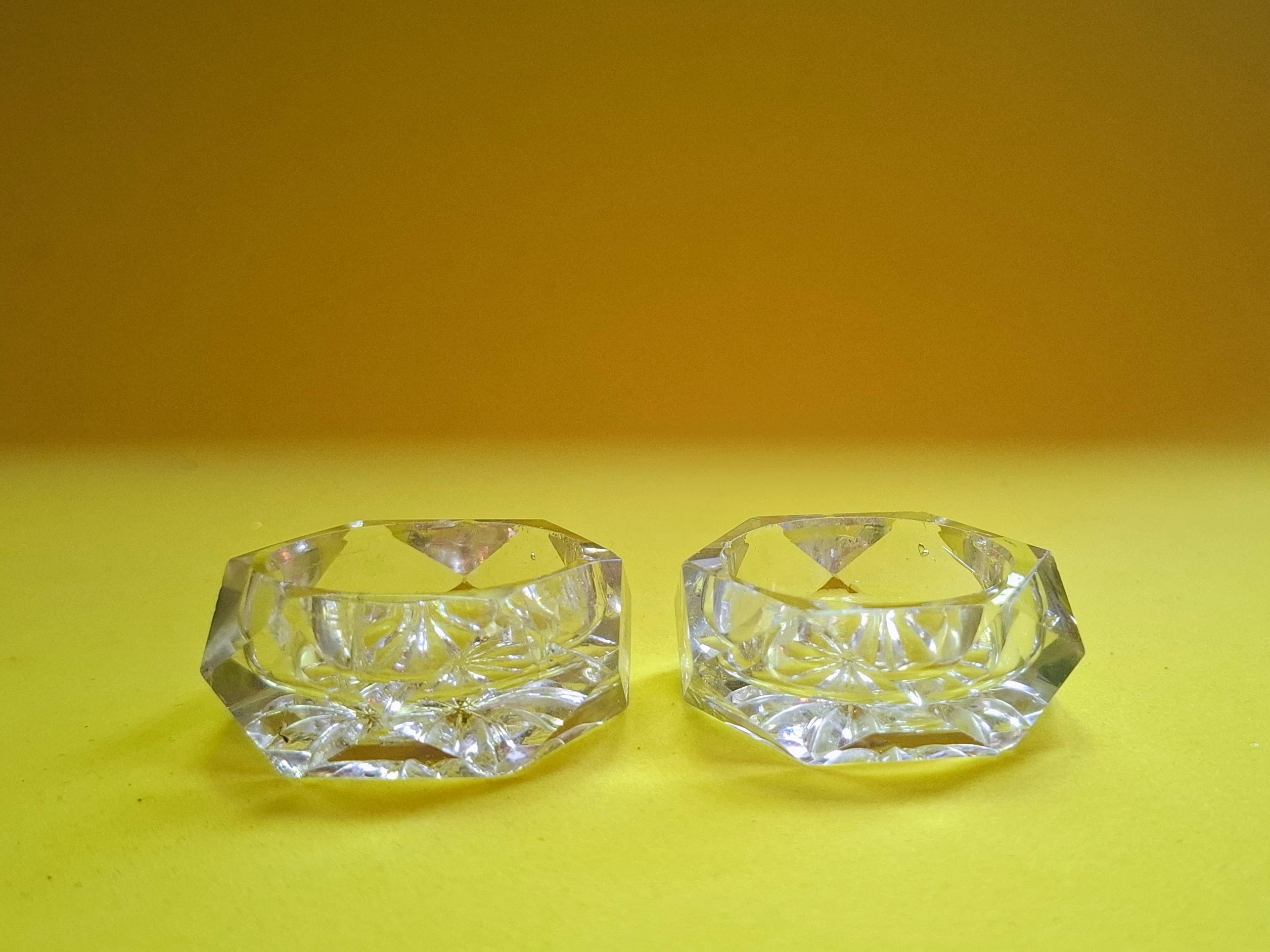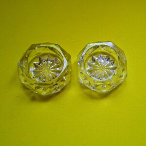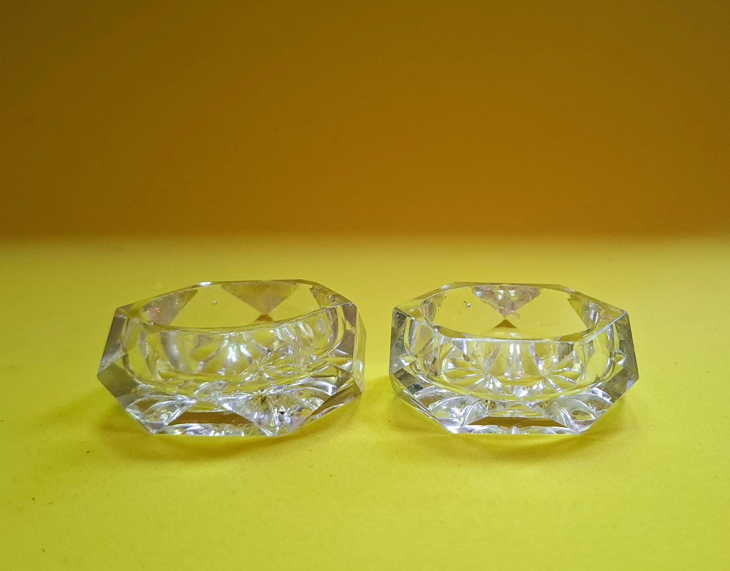 Hagyatékból származó kézi csiszolású kristály sótartók.