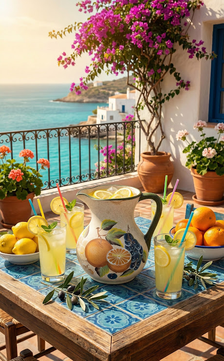 Ez a nagyméretű, öblös kerámia kancsó a déli tájak napsütötte hangulatát hozza el az otthonunkba. A tárgy felülete finoman texturált, krémszínű alapszínén életteli, kézzel festett gyümölcskonpozíció látható: érett narancsok, zamatos szőlőfürtök és bogyós gyümölcsök díszítik az oldalát. A sötétzöldre festett masszív fül és a hullámos perem elegáns kontrasztot alkot a világos testtel.