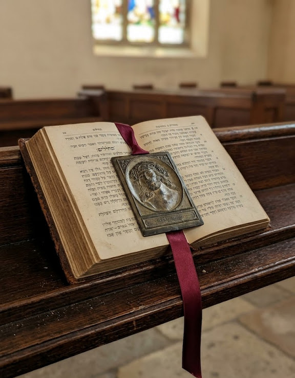 A classic religious small sculpture: a metal relief portrait of Christ with a crown of thorns, featuring beautifully detailed craftsmanship. The inscription „ECCE HOMO” (Behold the Man) is visible at the bottom of the relief. The artwork depicts the Savior’s suffering yet peaceful expression, framed by delicate, ornate motifs. The piece is a cast metal alloy—likely bronze or copper—that was hand-finished post-casting, bearing a slight patina that praises the passage of time, complete with its original metal hanger on the back. Based on its age and style, it likely originates from a Hungarian or Central European workshop from the mid-20th century (approx. 1940–1960). Despite its smaller size, it is a highly characterful piece of collectible value—offering a dignified sight whether hung on a wall, incorporated into a small home altar, or placed beside an old prayer book. As the light reflects off its patinated surface, it feels as though the prayers of the last century are still trembling upon it. A small piece of faith and peace—timeless and deeply human all at once.