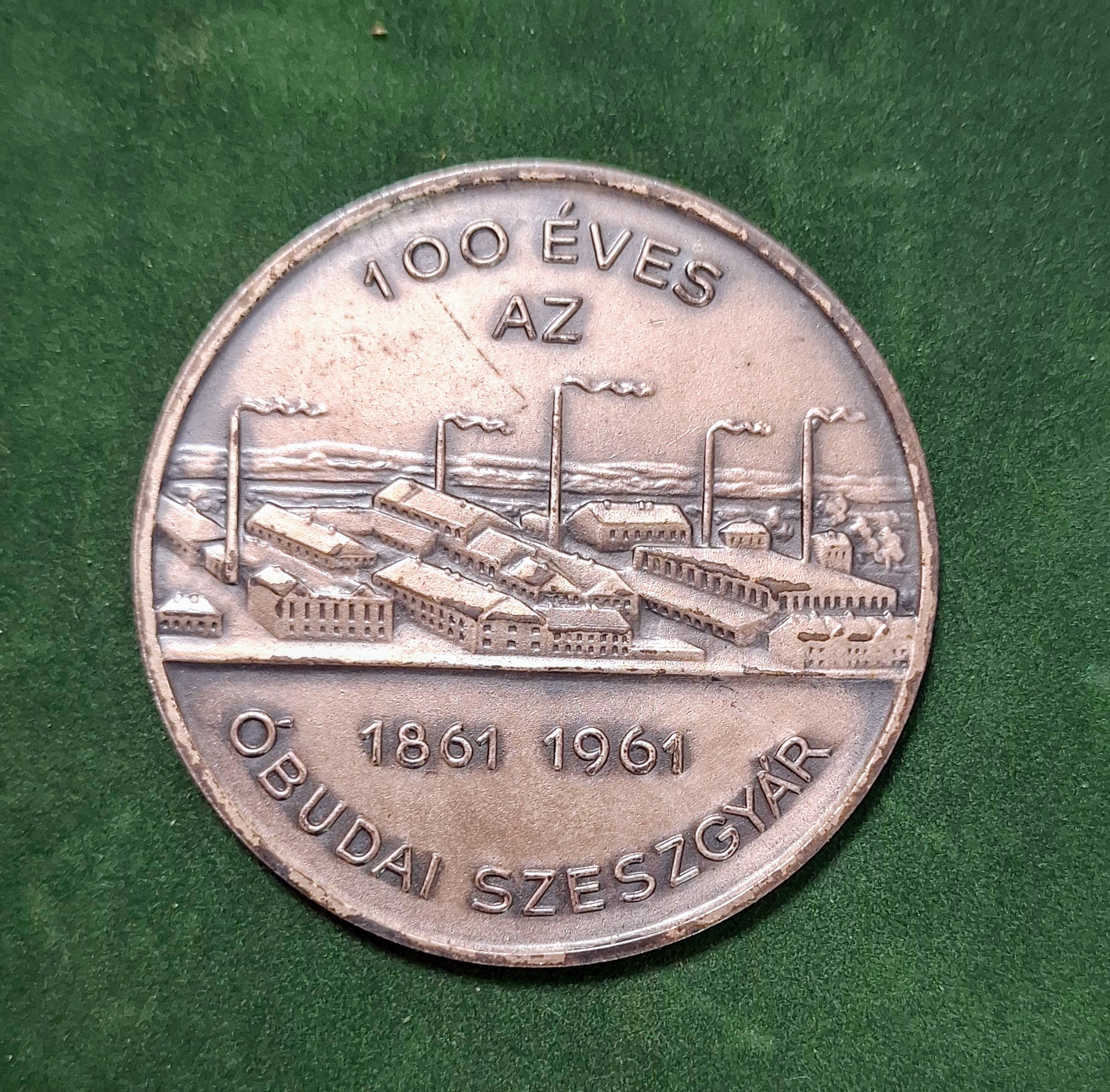 Különleges, 1961-ben kiadott jubileumi érem, amely az Óbudai Szeszgyár fennállásának 100. évfordulójára készült (1861–1961).