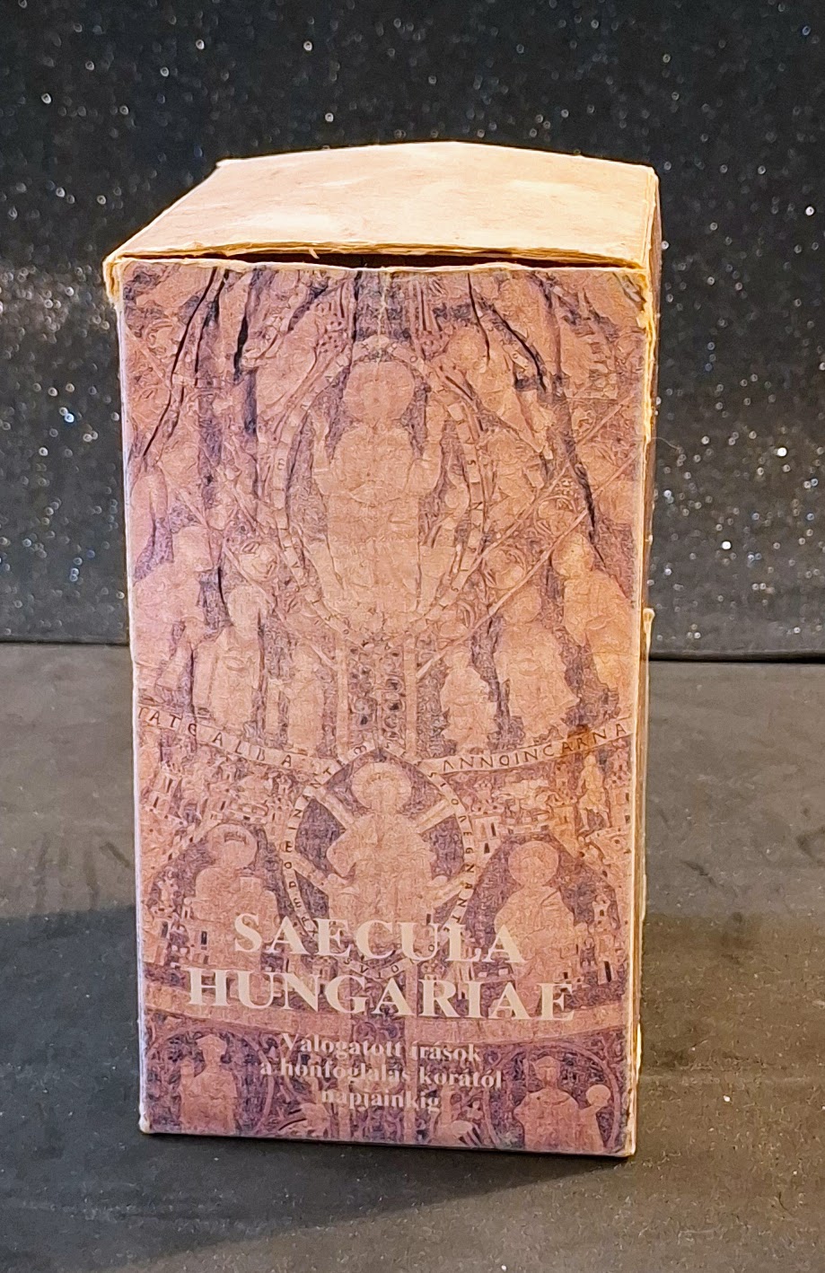 Saecula Hungariae is a rare diplomatic gift edition published in 1985 for the CSCE Cultural Forum held in Budapest. The boxed set contains 10 volumes, each summarizing a major period of Hungarian history—from the early Middle Ages to the mid-20th century.
