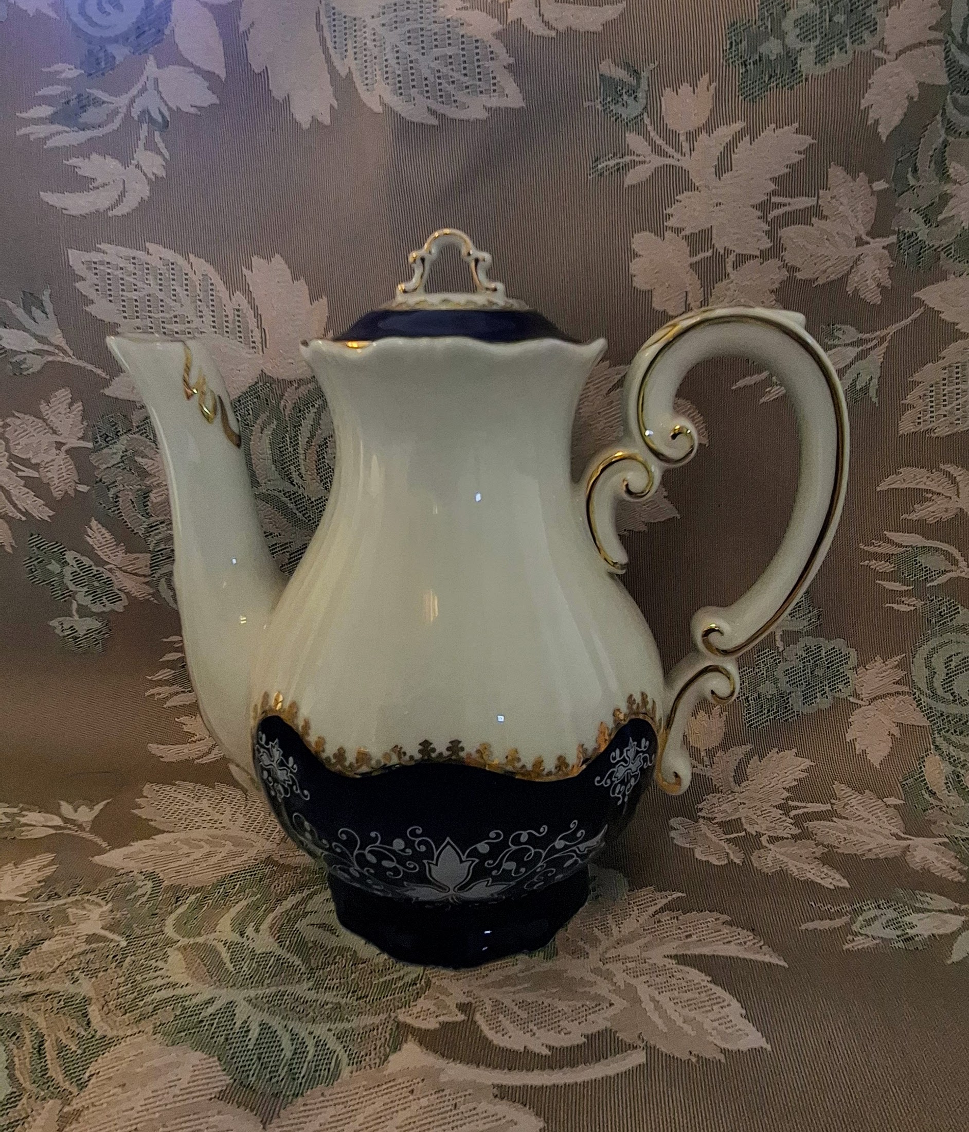 The Zsolnay Pompadour II collection is not just a tableware set but one of the most defining symbols of Hungarian porcelain art. Reflecting the style of the late 20th century, its design blends Baroque elegance with modern precision. The hand-applied silvery tendril motifs on the deep cobalt base, combined with rich 24-carat gold rims, create a truly regal appearance. The set includes 6 cups with matching saucers, an elegant coffee pot, a sugar bowl, and a creamer. Each piece bears the authentic blue five-shield Zsolnay stamp on the bottom, certifying the high quality of the Pécs factory. This set is perfectly suited for formal occasions or as the crown jewel of a high-end antique collection, as it is in flawless, mint condition with no signs of wear or damage.