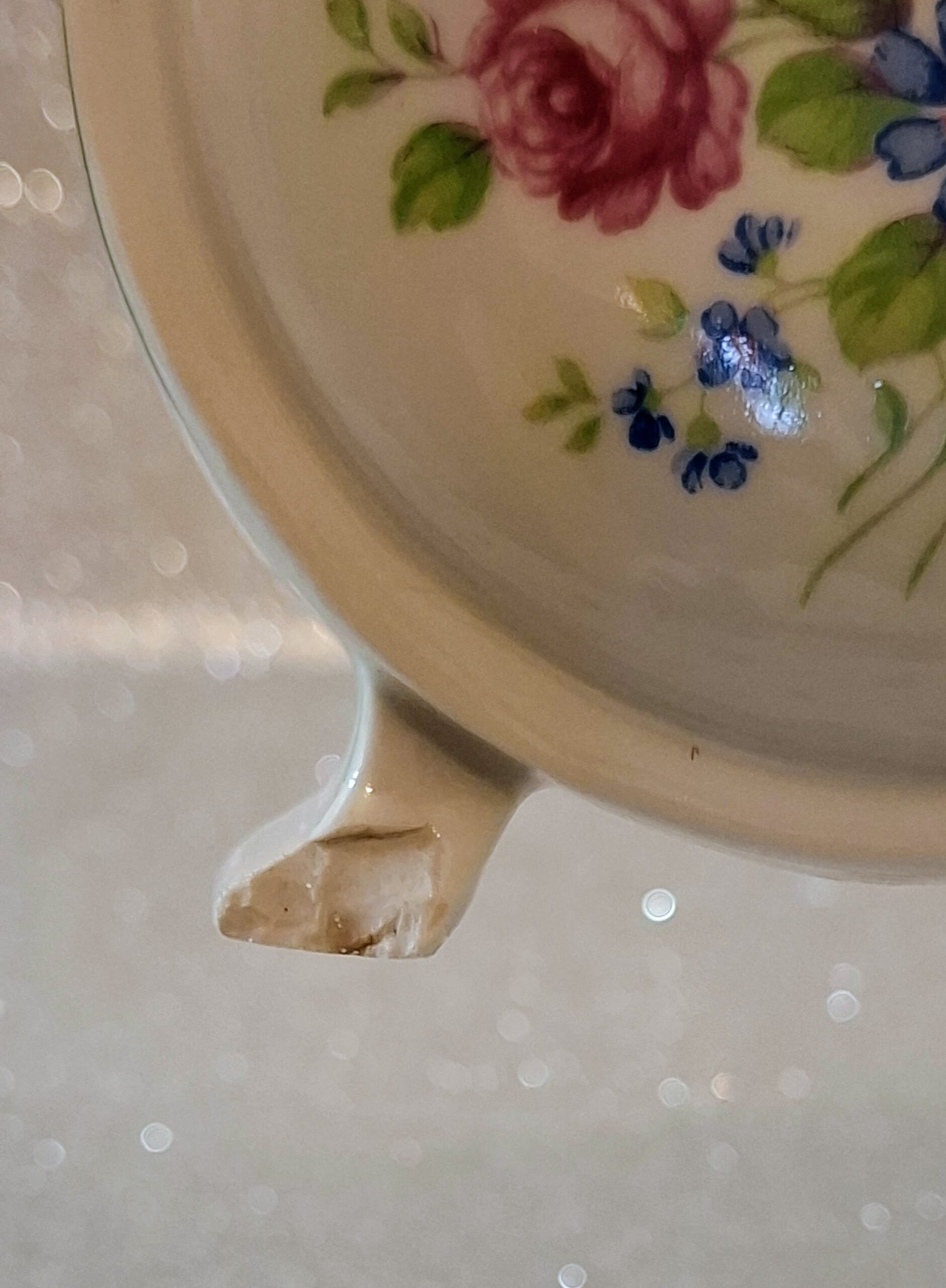 One foot shows a noticeable chip (see photos), while the rest of the piece is clean, intact, and without cracks. Still a delightful decorative accent for a shabby-chic, cottage-style or vintage interior.
