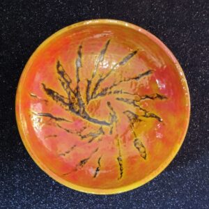 Szignózott Narancs-Sárga Art Kerámia Fali Dísztányér, Absztrakt / Signed Orange-Yellow Art Pottery Wall Plate, Abstract Motif